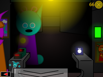 Catterane: A cyan colored cat, a freaky one at that. She will approach your main door force you to stay still so she can admire you, feeding more into her odd obsession. If you don't obey, she'll make you.
